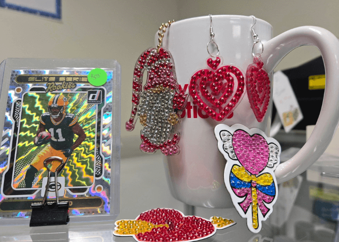 Have you checked out the latest items at Diverse by Design? Our unique retail space features a variety of handcrafted items made by our talented team members, including earrings, key chains, stickers, and magnets. We also carry a selection of football and baseball cards for collectors and sports fans.